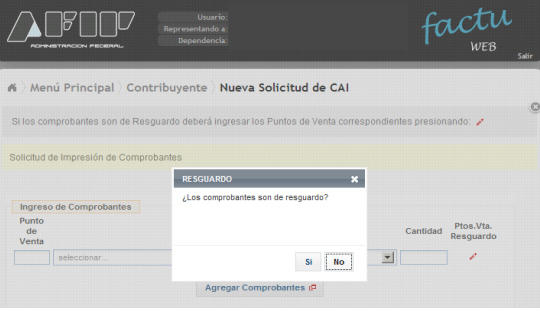 Al realizar la solicitud de C.A.I. en la web de la AFIP, el sistema nos pregunta si los comprobantes son “resguardo”.