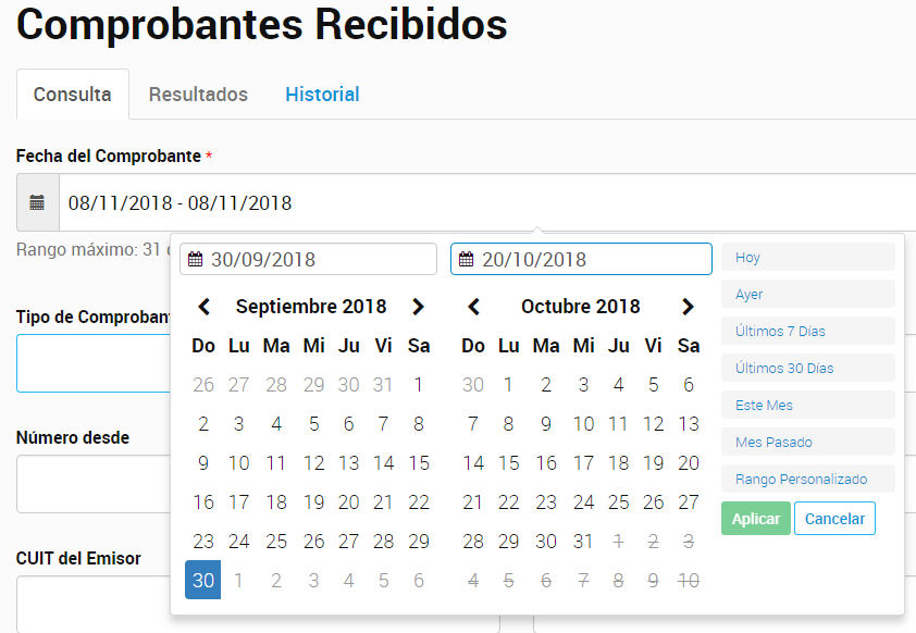 Una vez habilitado, se podrá ingresar y buscar comprobantes Emitidos y Recibidos