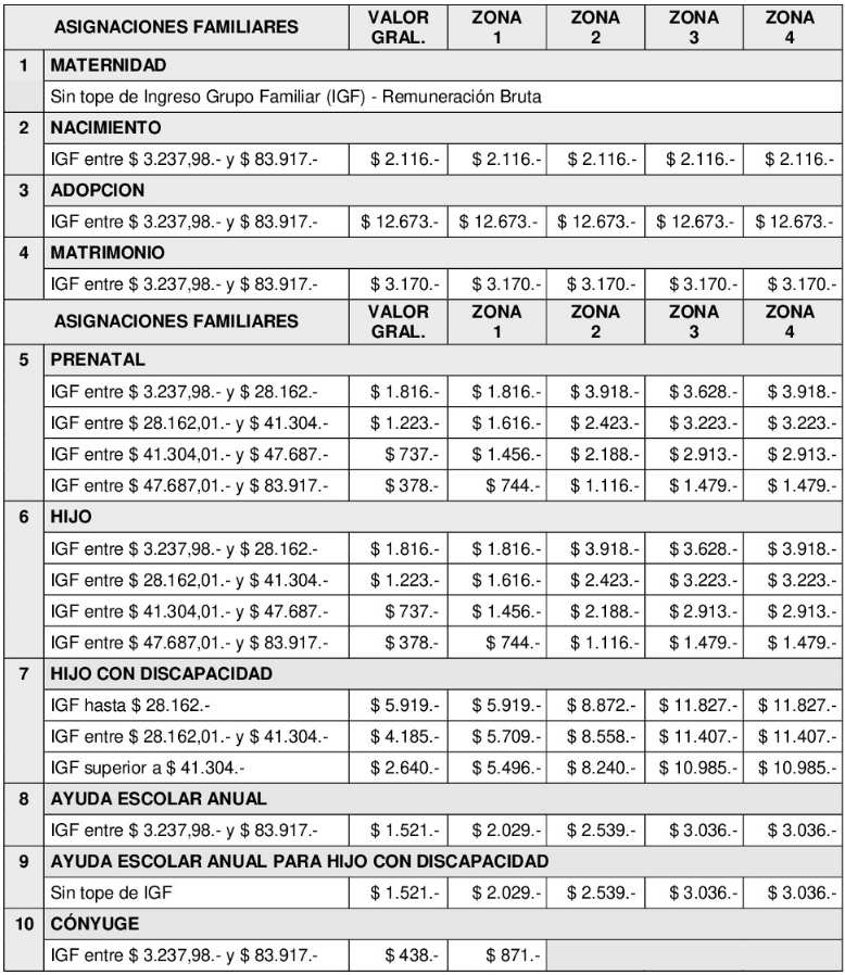 ASIGNACIONES FAMILIARES PARA TRABAJADORES EN RELACIÓN DE DEPENDENCIA, TITULARES DE LA PRESTACIÓN DE LA LEY DE RIESGOS DEL TRABAJO, DE LA PRESTACIÓN POR DESEMPLEO, DE LAS PENSIONES HONORÍFICAS DE VETERANOS Y JUBILADOS Y PENSIONADOS