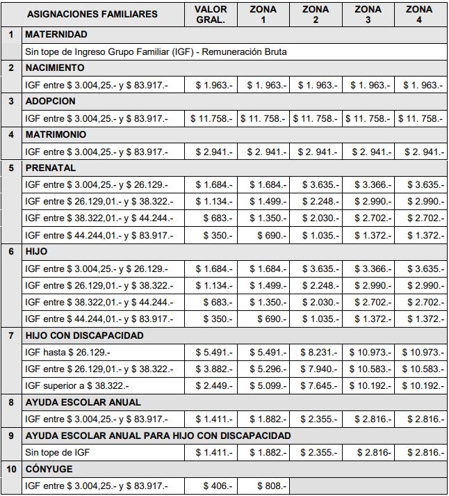 ASIGNACIONES FAMILIARES PARA TRABAJADORES EN RELACIÓN DE DEPENDENCIA, TITULARES DE LA PRESTACIÓN DE LA LEY DE RIESGOS DEL TRABAJO, DE LA PRESTACIÓN POR DESEMPLEO, DE LAS PENSIONES HONORÍFICAS DE VETERANOS Y JUBILADOS Y PENSIONADOS
