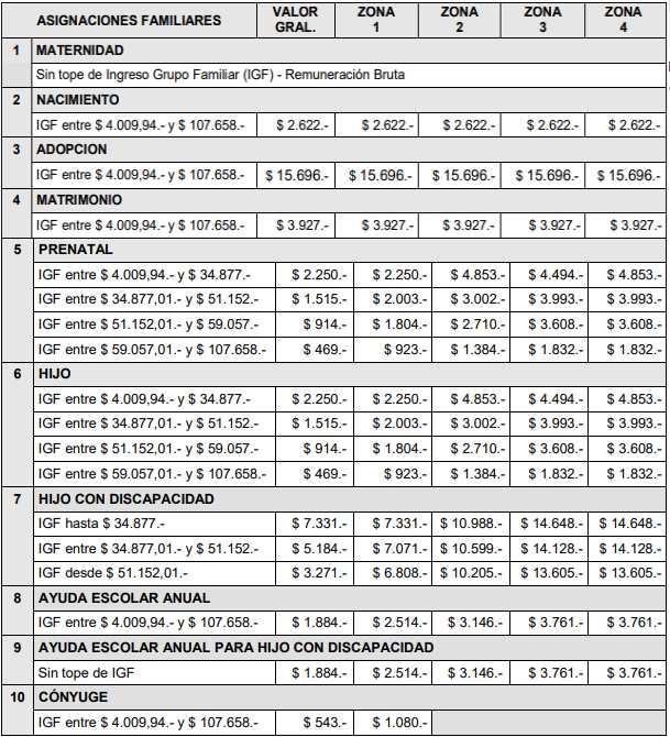Para el pago de estas asignaciones se toma en cuenta el “Ingreso del Grupo Familiar” (IGF) que consiste en la suma de todos los ingresos de los integrantes del grupo familiar: