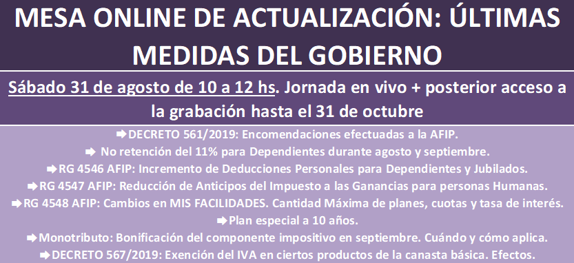El Centro de Capacitación Profesional lanza el talles de capacitación online sobre las últimas económicas del gobierno: