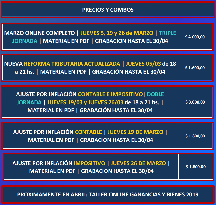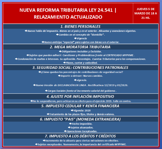 Capacitaciones de marzo 2020: Reforma tributaria y Ajuste por inflación Contable e Impositivo.
