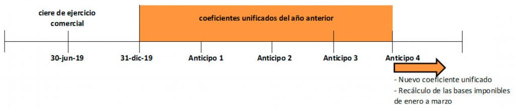Esto es así, porque la Comisión Arbitral dictó la Resolución 10/2019, a través de la cual establece que se deberán utilizar los nuevos coeficientes unificados a partir de la declaración jurada del primer anticipo del año calendario, si ya se cuenta con el último balance cerrado del año calendario inmediato anterior.