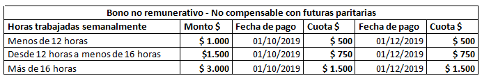 El bono es no remunerativo y no compensable con futuras paritarias. En los próximos días, saldrá la resolución en el Boletín Oficial.
