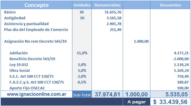Días atrás, había publicado la liquidación de Septiembre para Empleados de Comercio, pero debido a las medidas anteriormente descriptas, es necesario recalcularla.