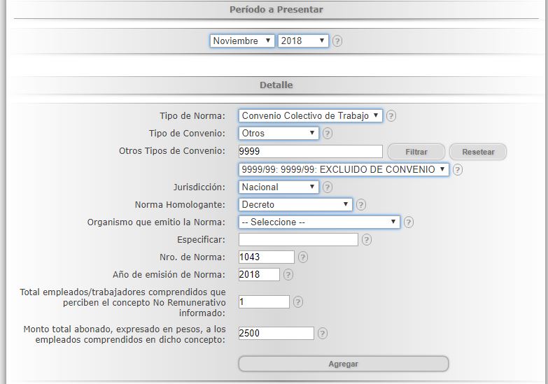 Cómo informar la suma no remunerativa del Decreto 1043/18 en la DJNR