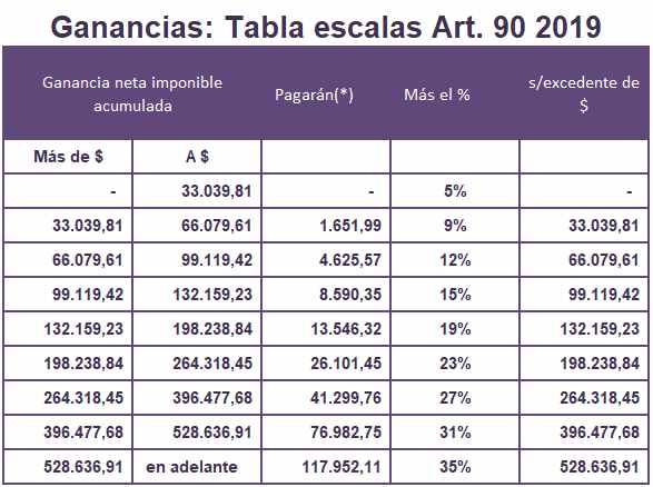 Escala Impuesto a las Ganancias artículo 90 Periodo Fiscal 2019