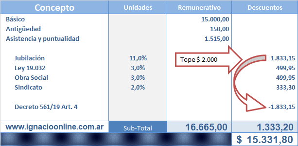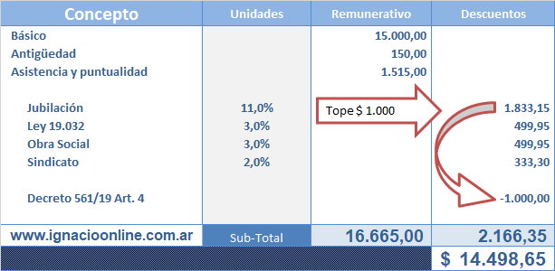 Luego, en la segunda quincena deberemos deatrear los $1.000 restantes para completar los 2.000 pesos de tope que establece el decreto.