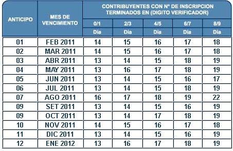ARTICULO 1º – Establecer para el período fiscal 2011, las fechas de vencimiento para el pago del Impuesto sobre los Ingresos Brutos – Convenio Multilateral, detalladas en el Anexo I que forma parte integrante de la presente resolución.