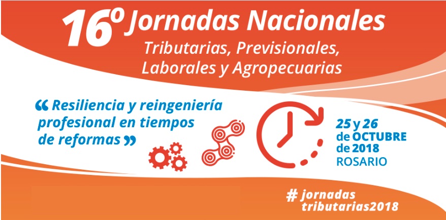 El 25 y 26 de octubre se llevarán a cabo en la ciudad de Rosario las 16º Jornadas Nacionales Tributarias, Previsionales, Laborales y Agropecuarias, con el lema de la misma es “Resiliencia y reingeniería profesional en tiempos de reformas.”